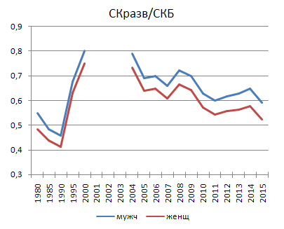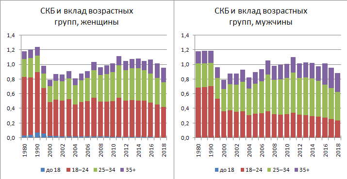 Падение рождаемости, которое происходит после 2014 года, идет по той же схеме, что и в 90-е годы. Падает сначала число браков, а затем и число первенцев. Но в 90-е у людей была надежда и вера в самодостаточность страны. И экономический суверенитет не был ещё утрачен. Сейчас этого нет. Нет перспектив улучшения благосостояния населения, а значит и рождаемости. Напротив, имеются все предпосылки для продолжения поляризации доходов и дальнейшего падения СКР до уровня ~1, где половина населения не сможет себе позволить детей вообще, а оставшаяся половина – только до уровня простого воспроизводства.
