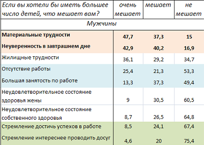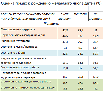 Что же мешает нашим гражданам создавать семьи и рождать детей как положено? Обратимся к результатам выборочного обследования «Семья и рождаемость», проведённого Росстатом в 2009: