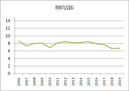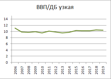 Держится около 10, так же стабильно, как и ВВП/М0, насмерть!